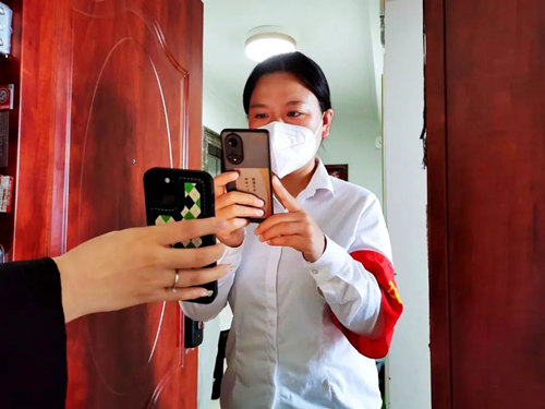 每天叫醒的不止是闹钟,还有肩上那份沉甸甸的责任。在业主足不出户的管理下,这些转岗的内部员工,每天早上5点半集合与医护人员一起上门核酸检测,登记人员信息,测量体温。