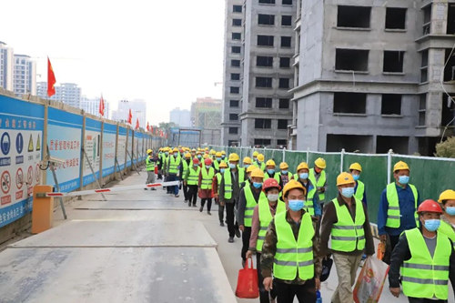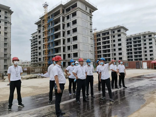 公司领导在深入勘查了施工现场后对施工工作做出明确指示,积极推进项目建设,加快推进项目建设进度,最大力度确保工程建设质量与建设进度,提前保质保量完成交楼!